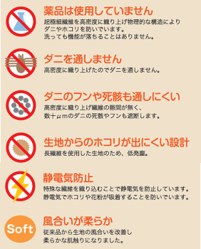 繊維の隙間を緻密にすることで、ダニをしっかり遮断します。