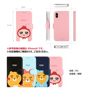 ------------------------------------------------ ■タイプ:手帳型ケース(磁石留め具付き) ■デザイン:キャラクター ■カラー:[リボン]ライアン(Ribbon RYAN)、[フード]ライアン(Hood RYAN)、[ハート]ライアン(Heart RYAN)、アピーチ(APEACH)【全4種】 ■サイズ:対応機種に合わせて製作されます。