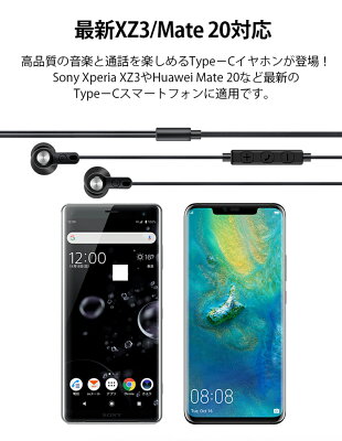 Type-C イヤホン カナル型 Type C USB イヤホン 高音質 タイプC オーディオ イヤフォン マイク付き 通話 音量調節 エクスペリア XZ2 HUAWEI Mate20 P20 iPad Pro10.9 スポーツ 送料無料